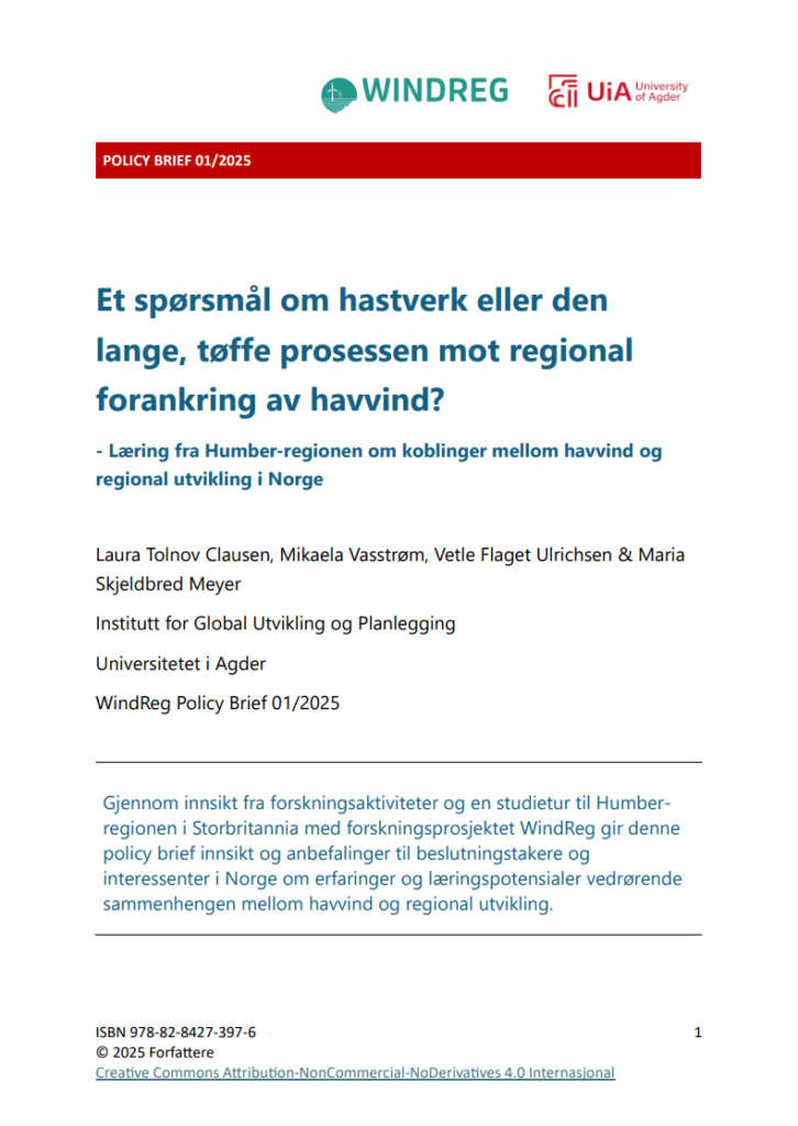 - Clausen, L.T og Vasstrøm, M. (2024) WindReg: Havvind og regionale fremtider: utfordringer og muligheter for energirettferdighet i regionale transisjonsprosesser. Haugalandsrådet, 25. Oktober 2024
